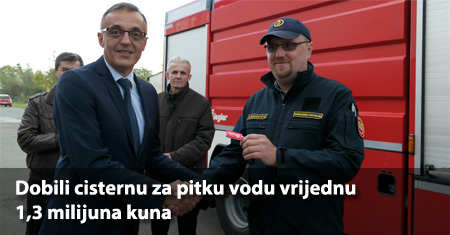 Ministar poljoprivrede Tihomir Jakovina uručio je Siniši Makovičiću, zapovjedniku Javne vatrogasne postrojbe ključeve, nove vatrogasne cisterne namijenjene za opskrbu pitkom vodom. Uz vatrogasce nazočni su bili Milan Mateša, direktor u Hrvatskim vidama i članovi Gradskog vijeća, te Milan Šuter i Stjepan Županić, predsjednik i zapovjednik Županijske vatrogasne zajednice. Cisterna vrijedna 1.375.000 kuna, jedna je od 23 cisterne koje je Vlada RH nakon natječaja namijenila vatrogasnim društvima i postrojbama.
