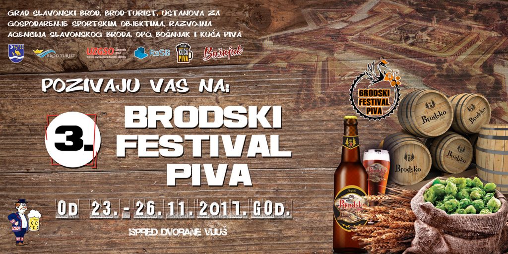SLAVONSKI BROD / SIČICE – U utorak je u Sičicama, kod Nove Gradiške, u kušaonici OPG Bošnjak, održana uvodna novinarska konferencija 3. Brodskog festivala piva, koji će biti održan u okviru 22. Katarinskog sajma u Slavonskom Brodu. Sajam će trajati od 23. do 26. studenog 2017. godine, održava seu dvorani Vijuš i oko nje. Konferenciji su nazočili Hrvoje Andrić, dogradonačelnik grada Slavonskog Broda, Mario Pejić, direktor Brod-turista, Dejan Vuksanović, direktor Razvojne agencije Slavonskog Broda, Damir Rukavina, ravnatelj Ustanove za gospodarenje sportskim objektima grada Slavonskog Broda, Željko Špalat, vlasnik Kuće piva i suorganizator festivala, te Mario Bošnjak, domaćin i vlasnik OPG Bošnjak.