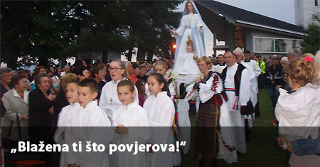 Dodao je kako su oni suradnici Božji u našoj hrvatskoj zemlji i da ne treba imati straha pred mukama i poteškoćama, koje prate sadašnji naš život. Kazao je da smo se okupili na Gospinom polju podsjetiti se sa sv. Pavlom, u drugom čitanju, da Bog ljubi čovjeka i surađuje s njime, udjeljuje mu konačnu sudbinu te kroz nevolje, patnju i smrt vodi u život. To je dalekosežna Božja strategija vječnosti, smisla, svjetla i punine života, naglasio je biskup. Svojim pristankom da bude majka Sina Očeva, uključila se u nju i Marija, jednostavna nazaretska djevojka, da bi, po svojoj ljubavi na križu, On našu smrtnu sudbinu preobrazio u život. Jednostavni ljudi, poput Marije, kazao je biskup, najbolje razumiju tu Božju strategiju, računaju i surađuju s njime. Pozvao je vjernike da mole za domovinu Hrvatsku, za sve na vlasti, za pojedince i obitelji, da Marija svojim zagovorom svima posreduje Božje svjetlo i snagu te da budu suradnici njegovih nauma.