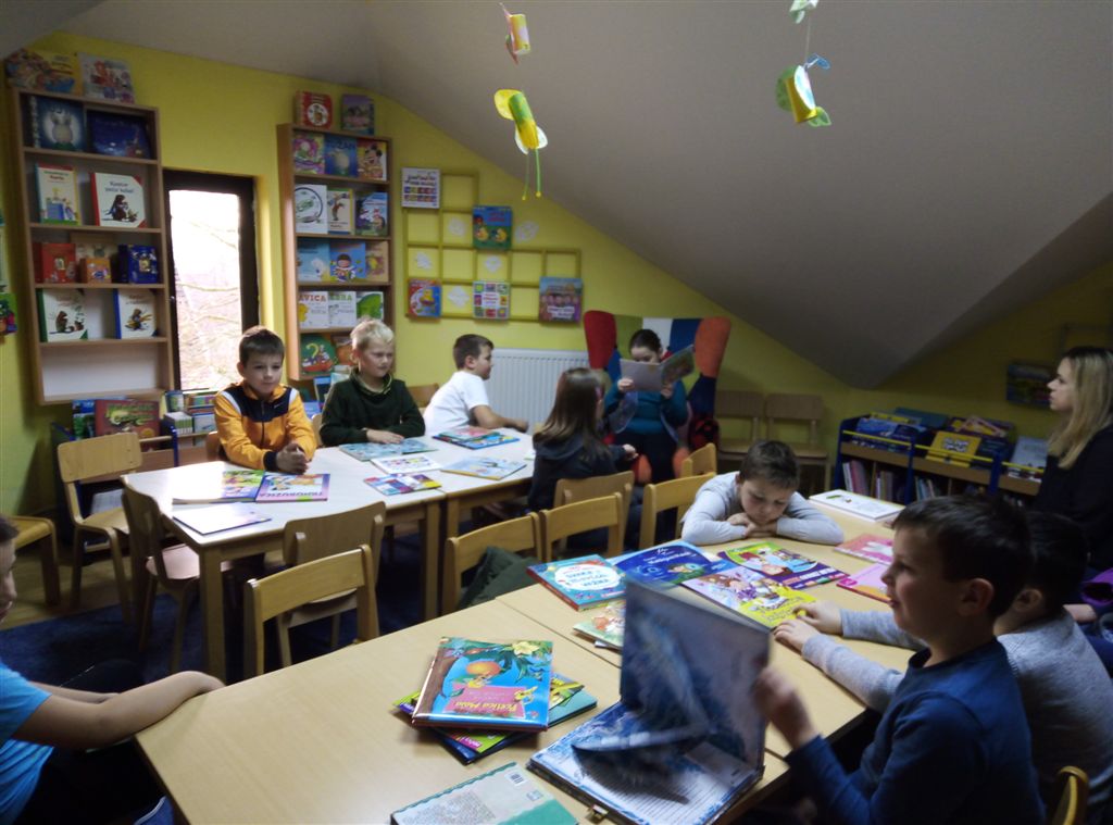 GORNJI BOGIĆEVCI – Dana 18. prosinca 2019. godine u Narodnoj knjižnici i čitaonici “Grigor Vitez” Gornji Bogićevci opet je bilo veselo i razigrano. Učenici drugog razreda PŠ Gornji Bogićevci zajedno sa svojom učiteljicom Anom Rosić Kovačević čitali su Božićne priče, listali slikovnice i knjige Božićnog sadržaja, razgovarali o Božiću i svim njegovim ljepotama, običajima, dobrim djelima, posjetima starijim i bolesnim, darivanju, zajedništvu obitelji. Najviše ih je dojmila priča „Božić velikih čeda“ ili želje, pisma, čokolade – autor: Miro Radalj te „Božićna priča“ – Nade Iveljić