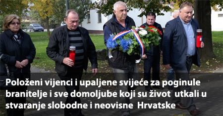 Vijenci su položeni i upaljene svijeće u znak sjećanja na sve poginule i nestale branitelje u Domovinskom ratu i za sve domoljube koji su život utkali u stvaranje slobodne i neovisne Hrvatske.