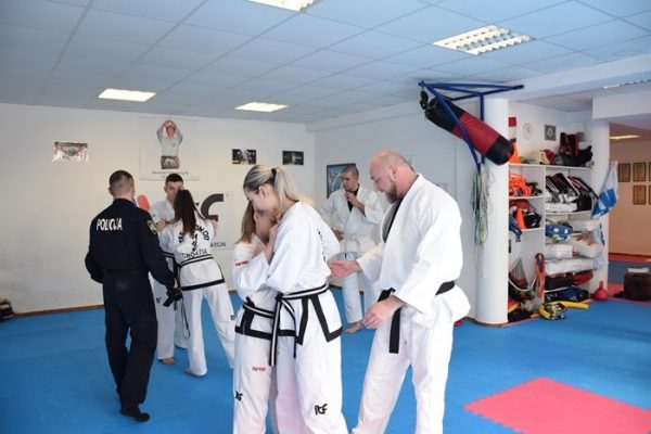 Za vrijeme zajedničkog treninga, članovi kluba (prošlogodišnji natjecatelji na Europskom prvenstvu u Taekwon-Dou kao članovi hrvatske reprezentacije) su policijskim službenicima demonstrirali udarce nogama (nožne tehnike), dok su policijski službenici članovima demonstrirali tehnike kojima se najčešće služe u obavljanju policijskog posla – judo bacanja, borba u parteru i dr.