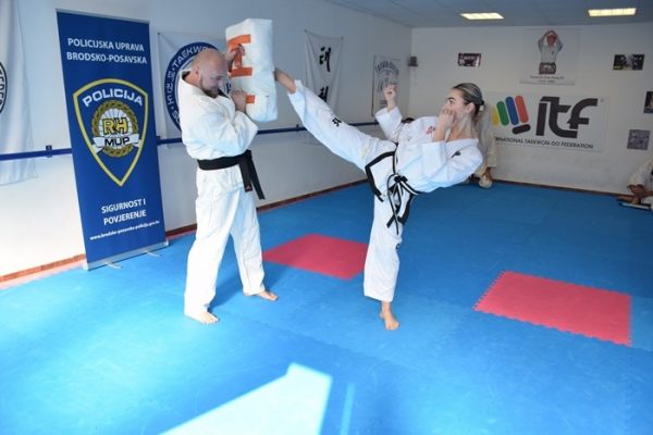 Policijski službenici zajednički su trenirali sa članovima Taekwon-Do kluba In-Nae iz Slavonskog Broda sa ciljem približavanja policijskog posla mladima kao i nastavka suradnje policijske uprave i sportskih klubova