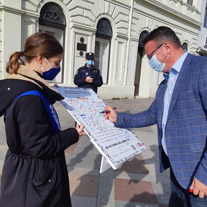SLAVONSKI BROD, 21. listopada 2020. – Ministarstvo unutarnjih poslova RH kao nositelj aktivnosti iz Nacionalnog programa sigurnosti cestovnog prometa upriličilo je prvi put obilježavanje 21. listopada Nacionalnog dana sigurnosti cestovnog prometa, koji je Hrvatski sabor proglasio Nacionalnim danom sigurnosti cestovnog prometa.