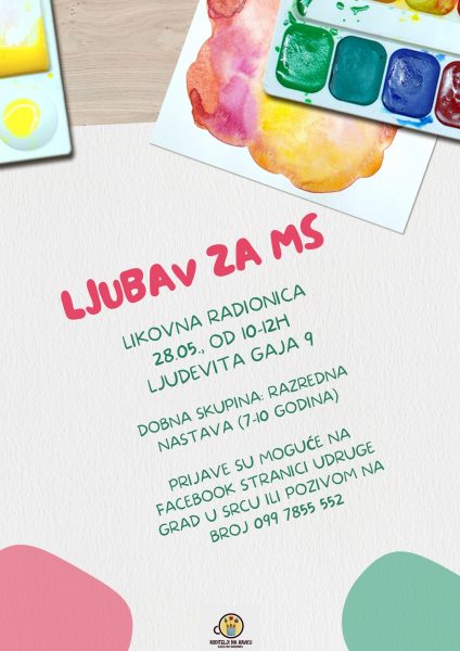 Radionica  po nazivom LJUBAV ZA MS  namijenjena je djeci od 7 do 10 godina. Na radionici djeca će izrađivati gipsane magnete koje će udruga  pokloniti  Društvu multiple skleroze, Klub Nova Gradiška povodom obilježavanja njihovoga dana.