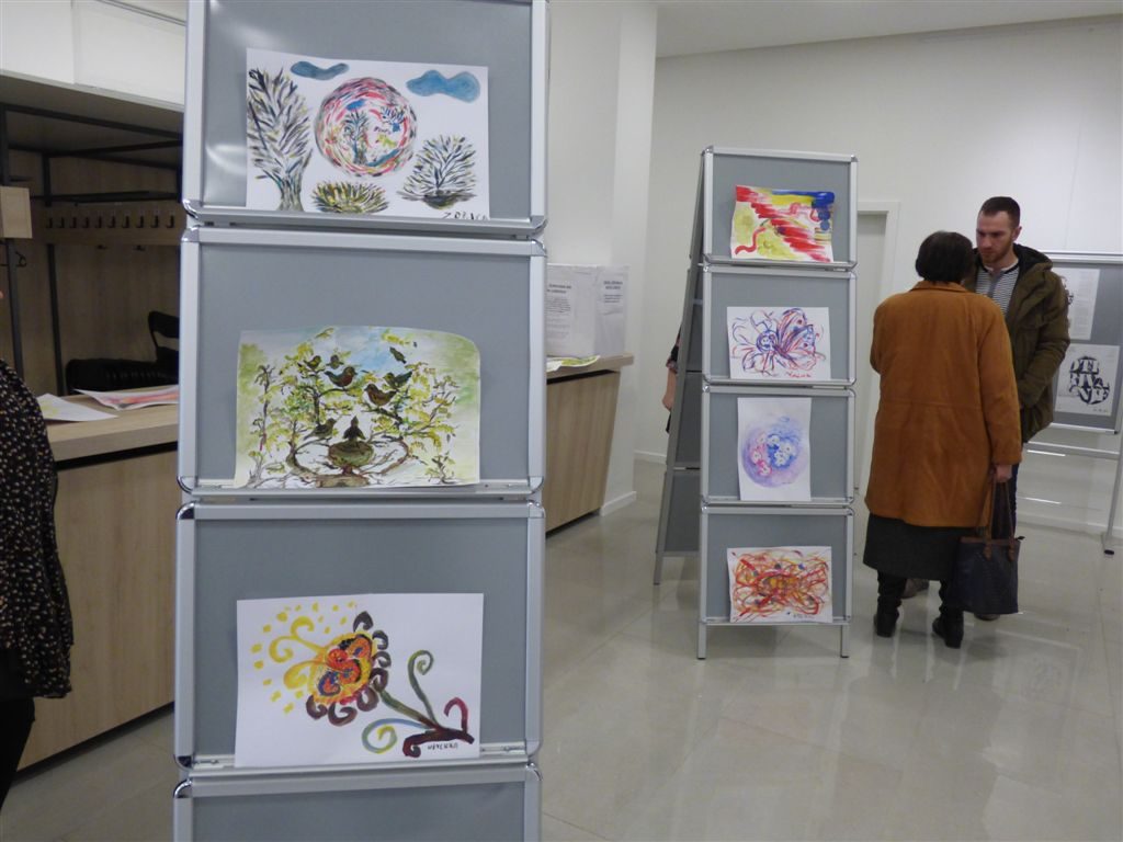 NOVA GRADIŠKA, 16. siječnja 2019. – Otvaranje izložbe OTKRIVANJE – glazbeni crteži autorice akademske slikarice i grafičarke Vesne Šantak jučer u Domu kulture popratila je radiona koju je autorica vodila, a na kojoj su bile članice Likovne sekcije „Duga“ koja djeluje pri Udruzi stvaratelja u kulturi grada Nova Gradiška.