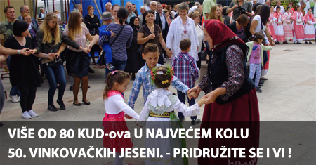 Ovo je poziv svim KUD-ovima i građanima diljem Lijepe naše, ali i iseljenicima, koji podržavaju manifestaciju i željno iščekuju poziv za sudjelovanje. Nažalost, mjesta za sve u Vinkovcima nema, no ovo je prigoda da i vi postanete dio jubilarnih 50. Vinkovačkih jeseni.