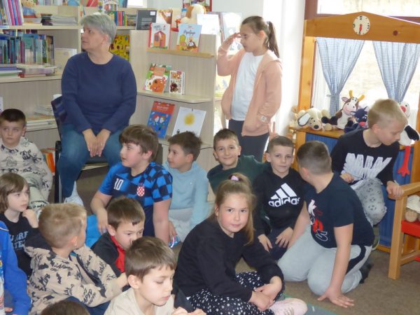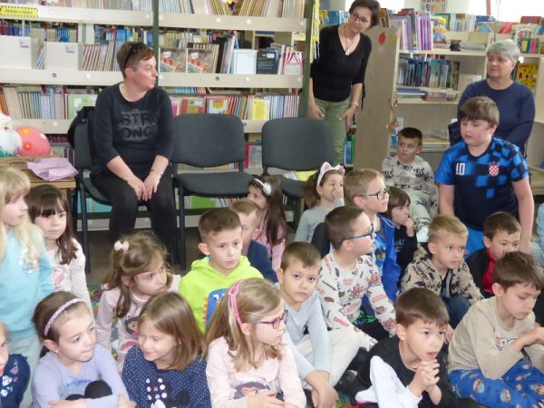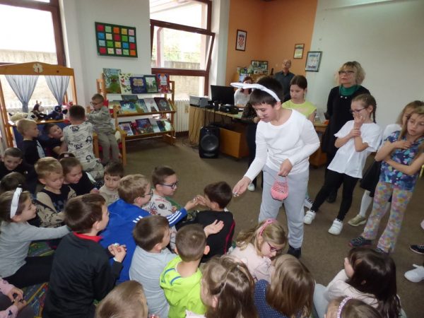 Ravnateljica Marija Bradašić-Mikolčević i knjižničari Goran Bašić i Renata Matijašević ugostili su na Dječjem odjelu djecu iz vrtića, učenike 2. b razreda i njihovu učiteljicu Željku Trelin, te članove Dramske skupine nižih razreda Osnovne škole „Mato Lovrak“. Pozdravila ih je ravnateljica, a oni su se pobrinuli za zabavno i kreativno druženje.
