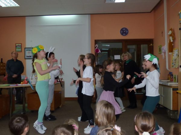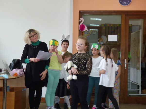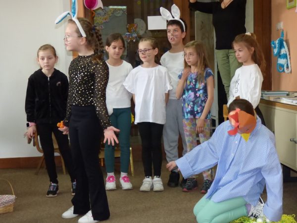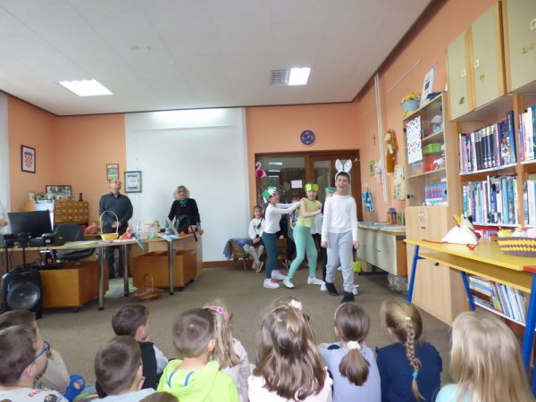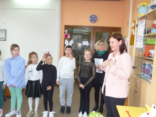 Osnovci su obradovali i razveselili stariju skupinu „Pužići“ iz Dječjeg vrtića „Radost“ i njihovu odgojiteljicu Željku Šebalj dramsko-scenskom predstavom „Zaboravljivi zeko“ i zgodama zaboravljivog uskrsnog zeke.