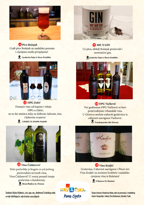 Važno je još jednom napomenuti da cjelokupni projekt u I. i II. fazi financira Turistička zajednica Brodsko – posavske županije uz potporu Brodsko – posavske županije. Stoga ovim putem pozivamo sve zainteresirane da se jave na naše kontakte. O samom projektu mogu više vidjeti na našim Web stranicama pod nazivom “Okusi graničarskog posavlja”. Osnovni cilj nam je bio unapređenje ponude tradicijskih jela i pića, izgradnja tržišne prepoznatljivosti i postizanje izvrsnosti.